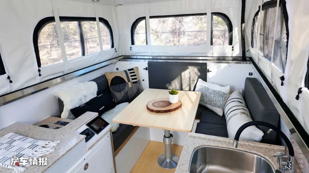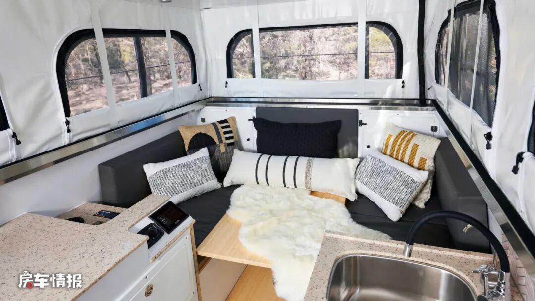 升起升顶后的车内,不仅径直高度非常的不错,能够达到1956mm,而采用了北欧简约风格的设计,在视觉感上也有提升整体空间的效果,更加的通透明亮。