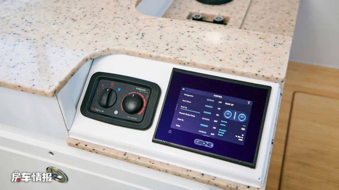水电方面,这款房车搭载了一台3000W的逆变器,提供400Ah的锂电池,并在顶配配备了324W的太阳能板;水路上则拥有136L的净水箱,整辆车还提供了热水器,方便在冬天的时候使用。