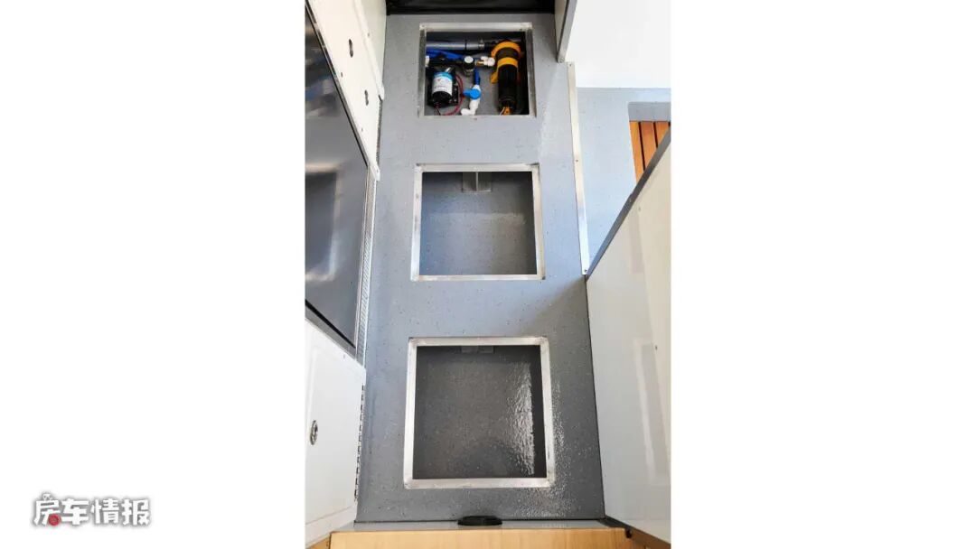 另外为了提升整辆车的储物能力,除了在后方沙发垫的下方设计了储物空间,在地板的下方也设计了暗格,能够存放一些日常的物品。
