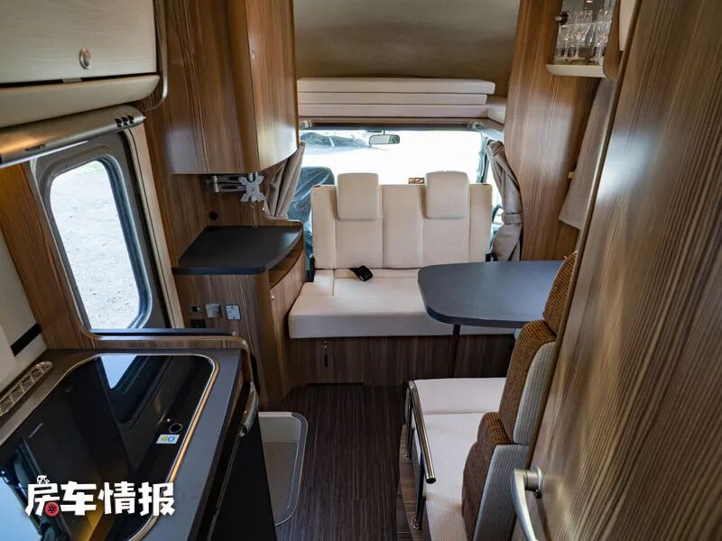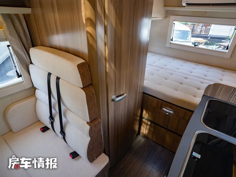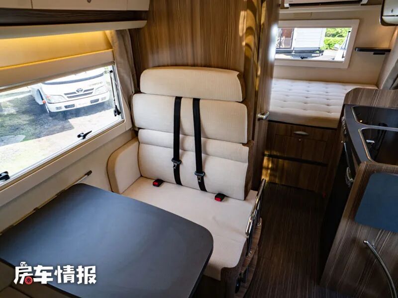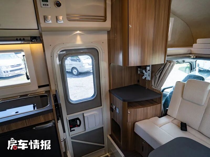 得益于轻卡底盘自身的空间优势,和一般的床车相比,内部空间还是比较不错的,而且整体布局其实和我们国内的C型房车差不太多。