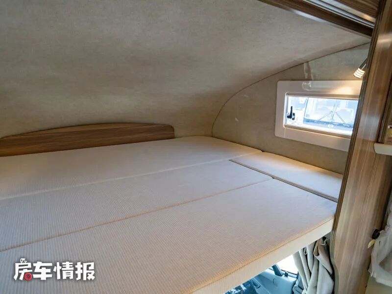 最前方的额头区内是提供了一张尺寸为1860*1000mm的额头床,不过由于额头外观的造型设计比较流线型,所以整体的空间更适合一个人居住,两边也提供了采光通风的外推窗。