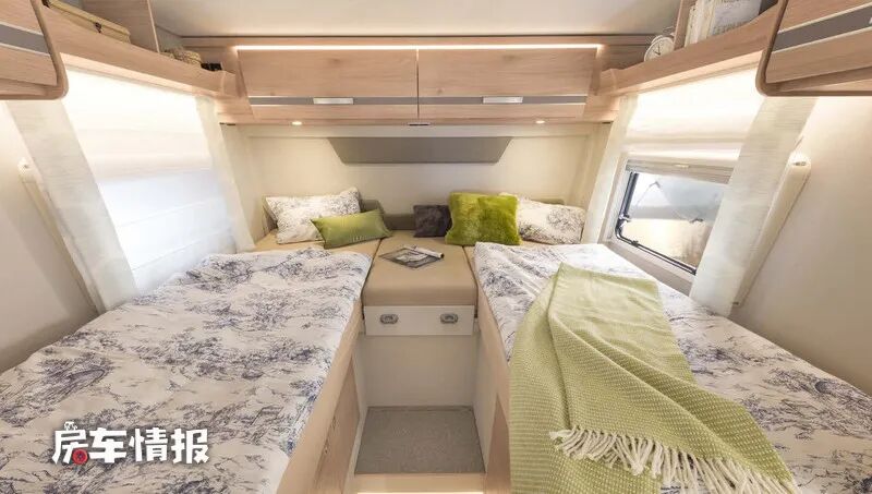 另外的EB和EBL车型则采用的是类似酒店标间的设计,一左一右两张单人床,不过后期有需要也可以将中间的床头柜抽拉出来使两张单人床变成一张双人大床。