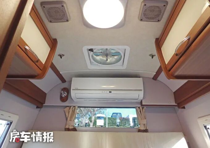 这款房车也是一台家用空调负责车内的温度控制,同时车顶上方还配有换气扇保证通风。