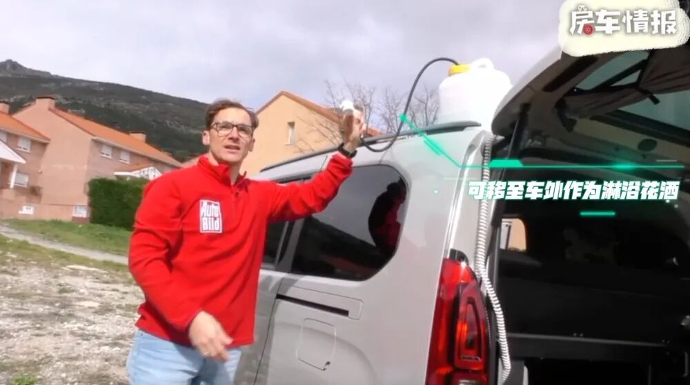 虽然整车的尺寸不大,但是内部的基础生活配件还是有一些的,包括带有淋浴花洒的净水箱,以及拓展后尺寸可以达到1米9*1米15的横置床铺,另外还提供了车载冰箱,作为一款露营车来说,还是绝对够用的。