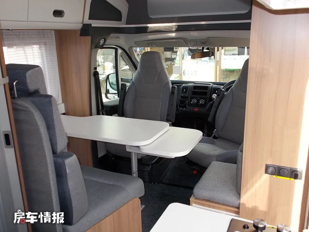 车内的设计相对日本传统房车还是更加商务精致一些的,最前方是双人连排座椅+拓展餐桌的设计,加上均可以向后旋转的主副驾驶座椅,和乘客门前方的小穿鞋凳,也能打造出一个容纳五个人就餐小聚使用的区域。