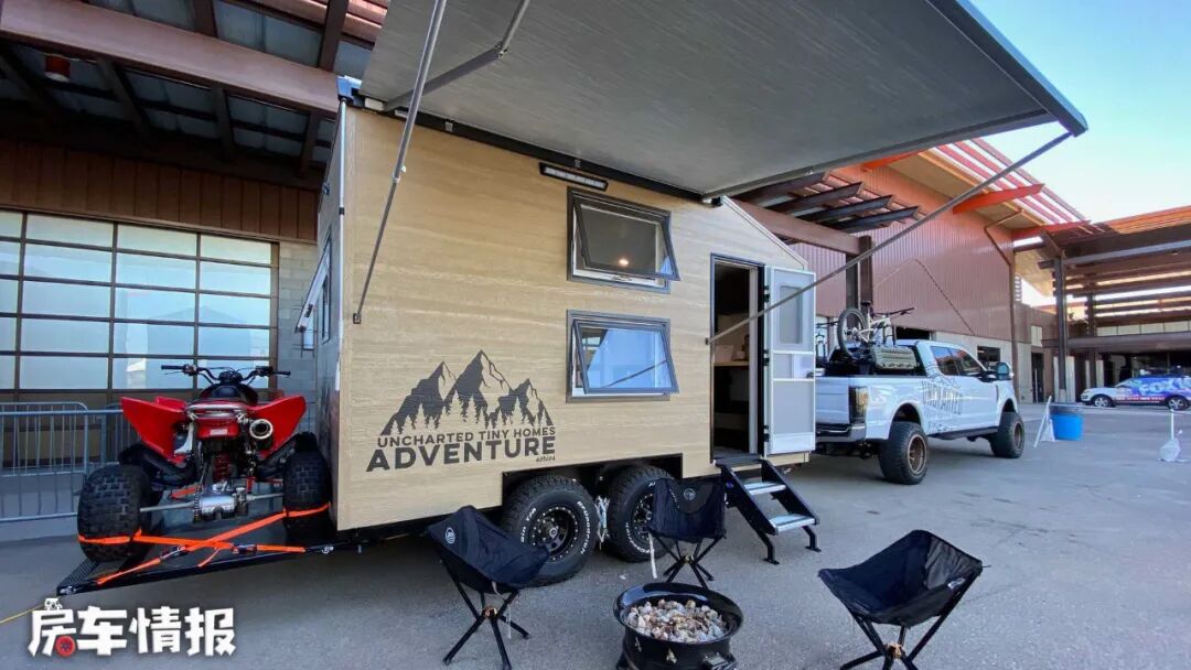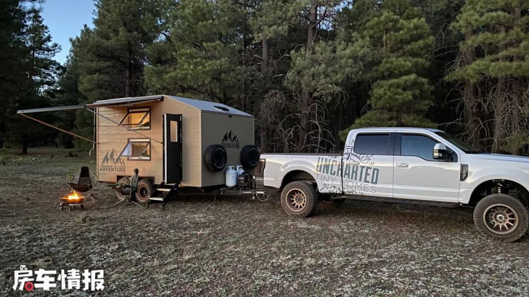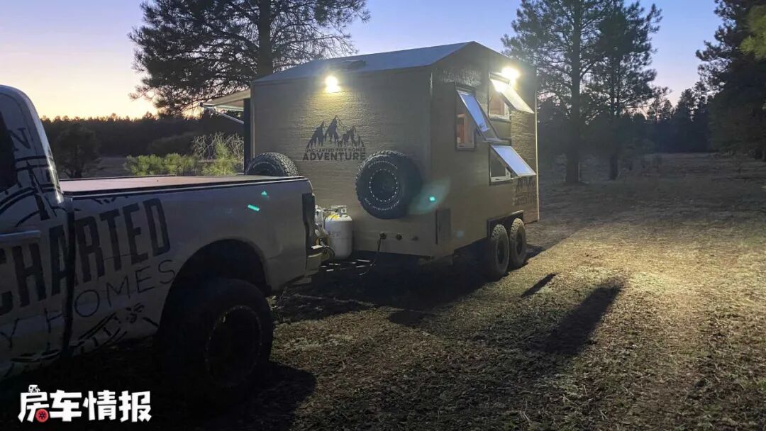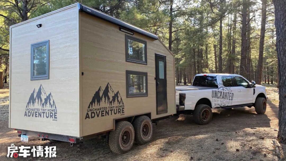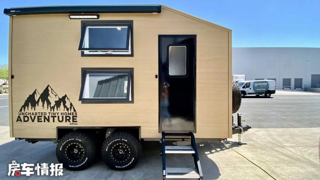 这是一款由海外车企设计的拖挂式房车,乍一看更像是一辆移动木屋,方正的造型完全没有考虑风阻的,但也因此能够更大限度上利用内部空间。