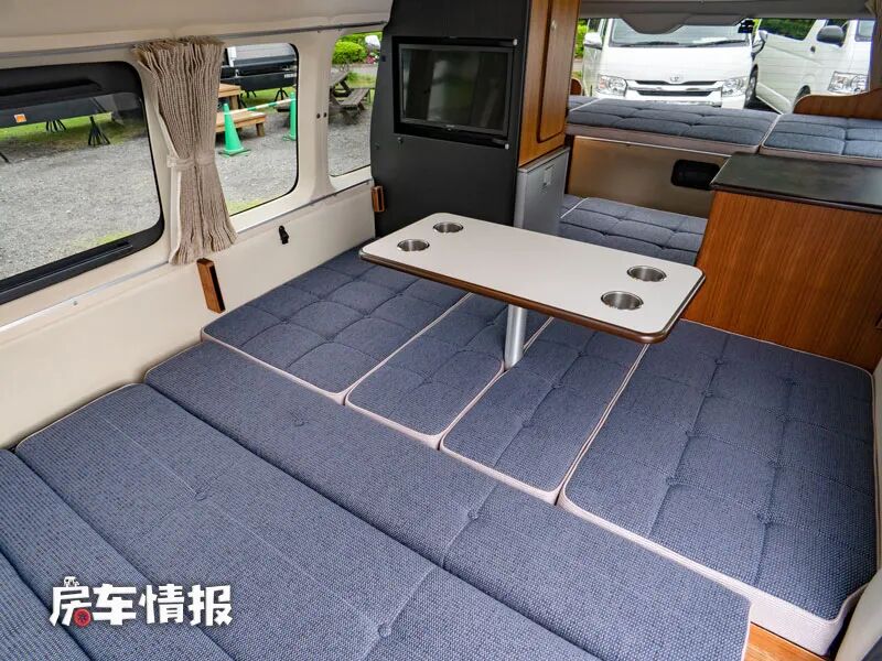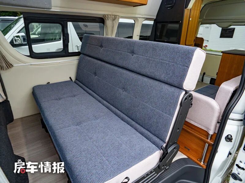 除此之外,最前方的三张沙发桌椅还可以相互拼接变成一张大尺寸的通铺,最多也可以躺下三个成年人。