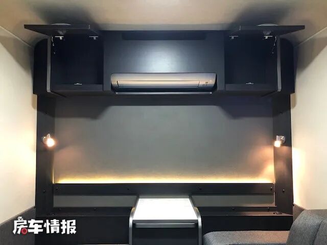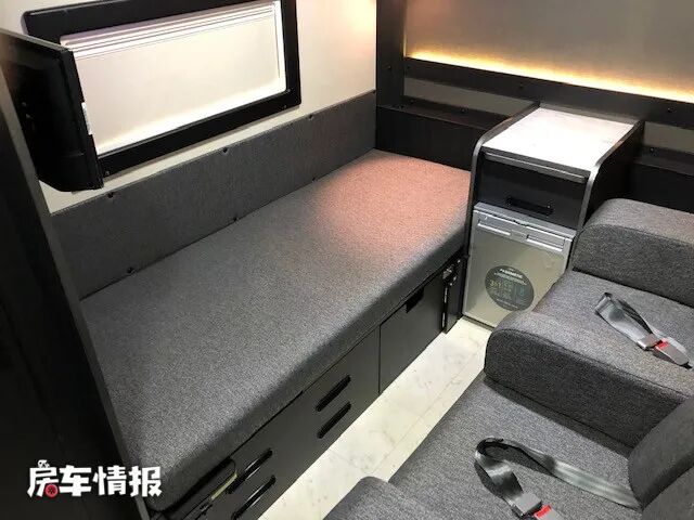 走进车内,生活区空间较为紧凑,但是在这个较小的车厢内部也是充分利用了各部分空间,由前到后依次为额头床、厨房区、卫生间以及会客区,尤其在会客区内能明显感觉到酒店的感觉,接下来让我们一起来看看吧~