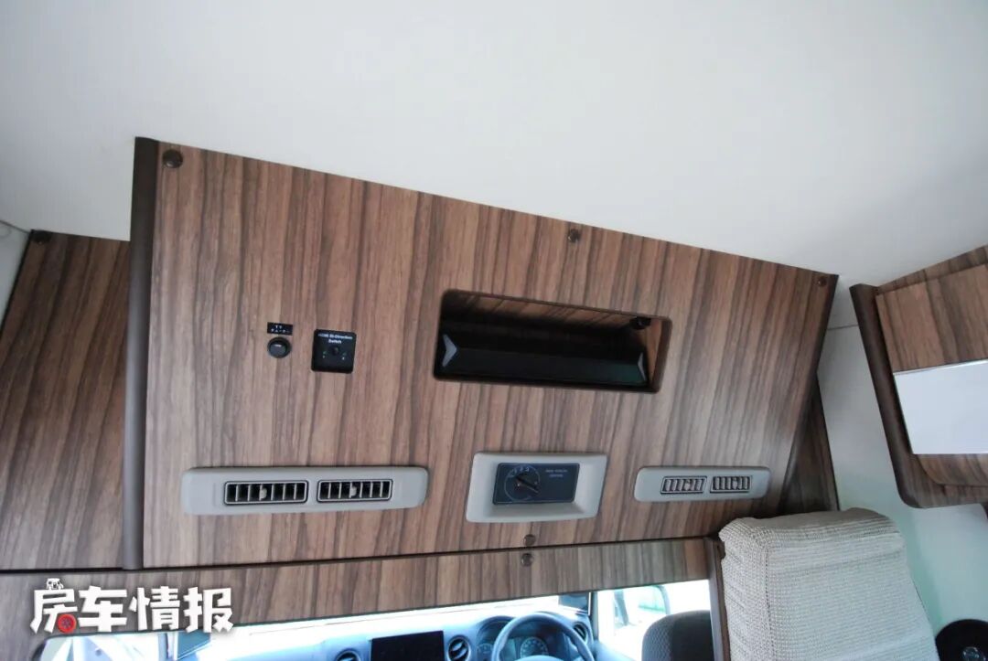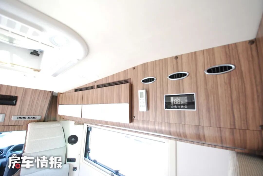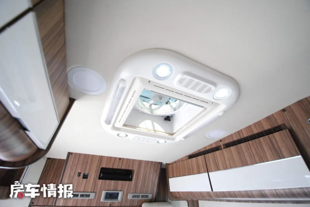 除此以外这款车在后生活区提供了行车空调出风口、驻车空调、换气扇等基础设备,在旅行中可以提高一定的舒适性。