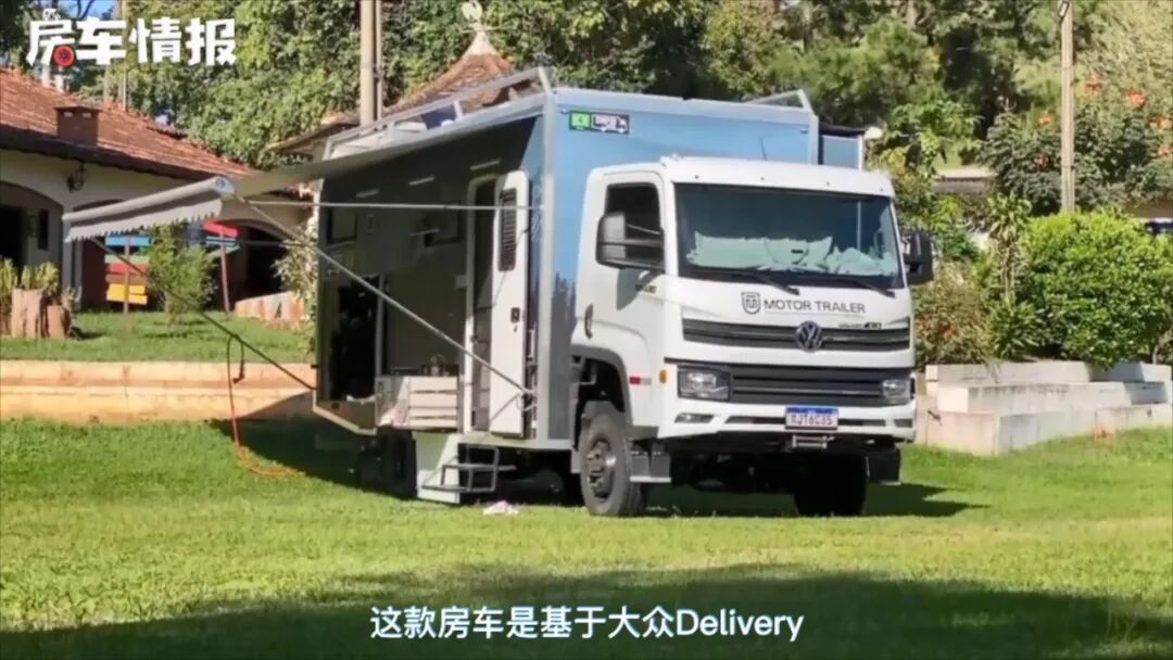 这款房车基于大众Delivery平头卡车打造而成,外观看起来和主流的平头房车差异不大,方头方脑的显得挺高大,不过和国内轻卡相比,这款车毕竟悬挂的是大众车标,看起来还是挺有高级感的~