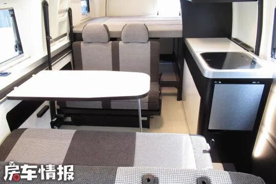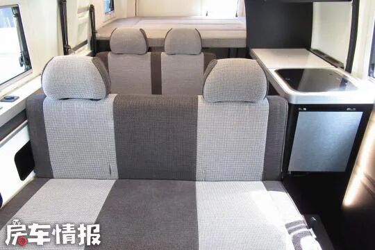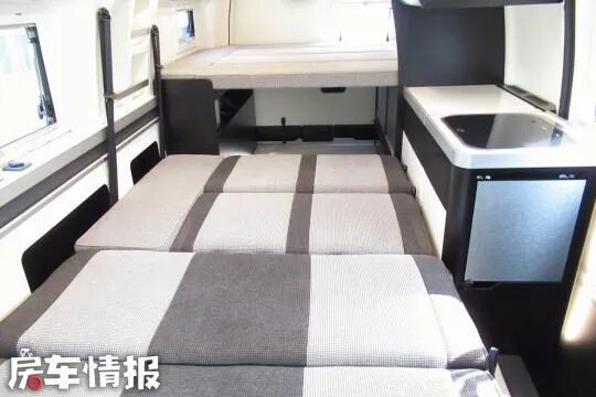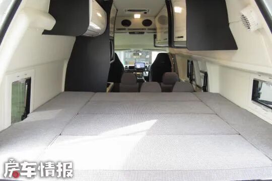 和普通的海狮床车相比,这款车加高了顶部的设计,而且两侧和车尾还有外凸式的盲窗设计,这样也可以有效的增加内部的使用空间。