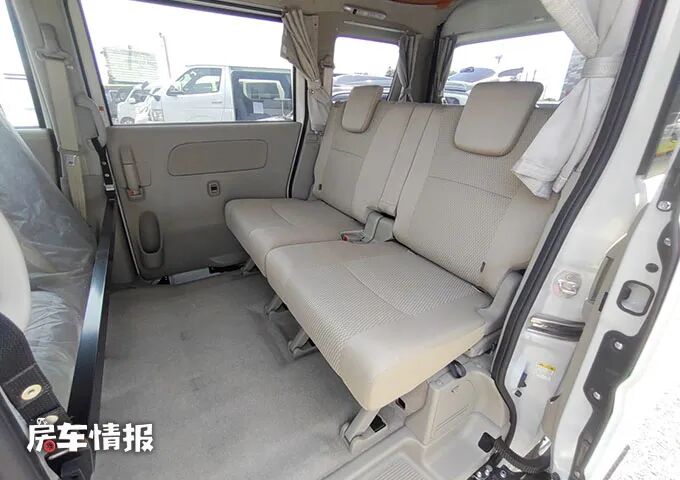 车厢左右两侧的侧滑门都可以打开,这样也为后期进入车厢内部提供了便利性,车厢内部是一排双人的乘客座椅,采用了亲肤透气的布艺材质,还带有头枕,并配置了安全带,所以日常行车时也能够乘坐。