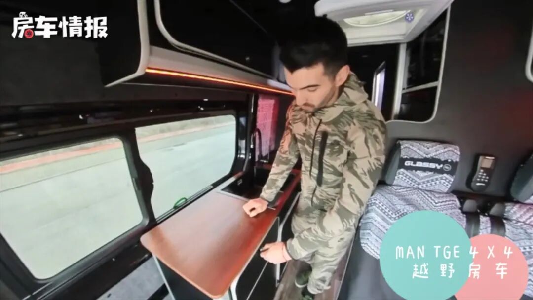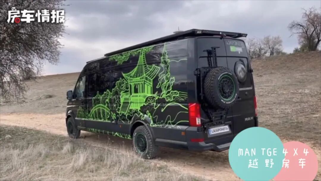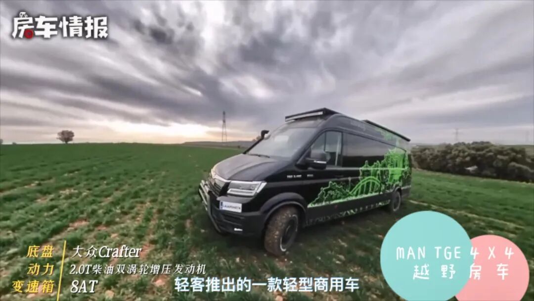 今天给大家带来的是一款基于德国MAN TGE 4X4轻客打造越野房车,MAN TGE 4X4,是德国曼和大众联合基于大众Crafter轻客推出的一款轻型商用车,为此这款车也可以看作是“换标大众”。整车的外观设计非常科幻,同时也很有越野范儿,动力上搭载的是一台2.0T柴油双涡轮增压发动机,最大马力177Ps,传动系统匹配的是8速自动变速箱,并且还带有4X4全轮驱动系统,提升了非铺装路面上的通过能力,更多详情继续看视频吧~