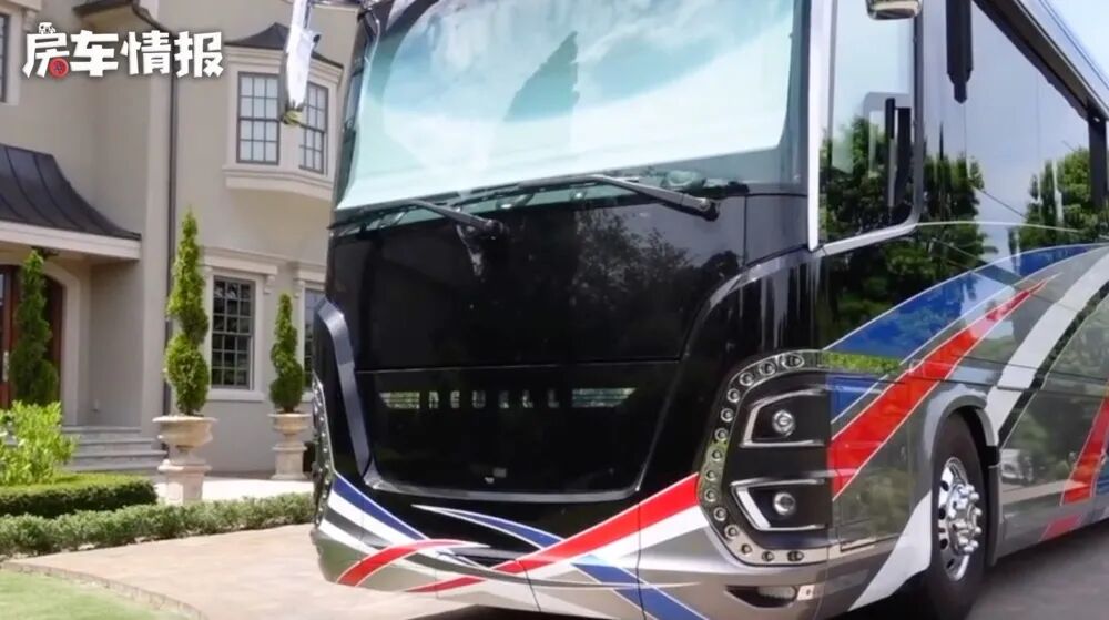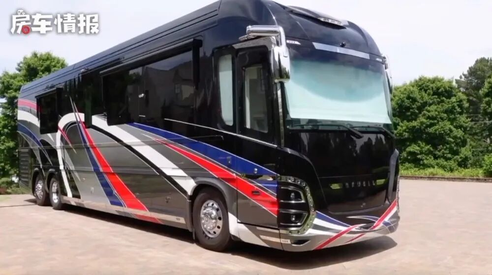 今天带大家认识一款真正的豪华房车!这款车就是来自于美国的Newell Coach房车,外观采用红蓝灰黑相拼接的颜色,看起来非常的时尚靓丽,车身两侧都带有拓展舱,下部摆围也设计了多个储物舱,并提供外置的整体厨房。