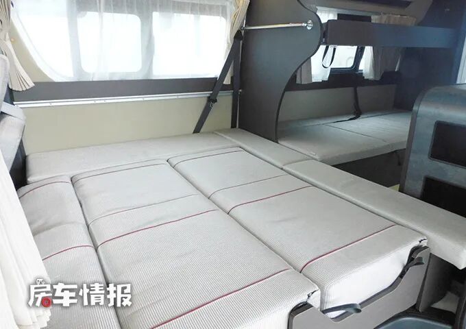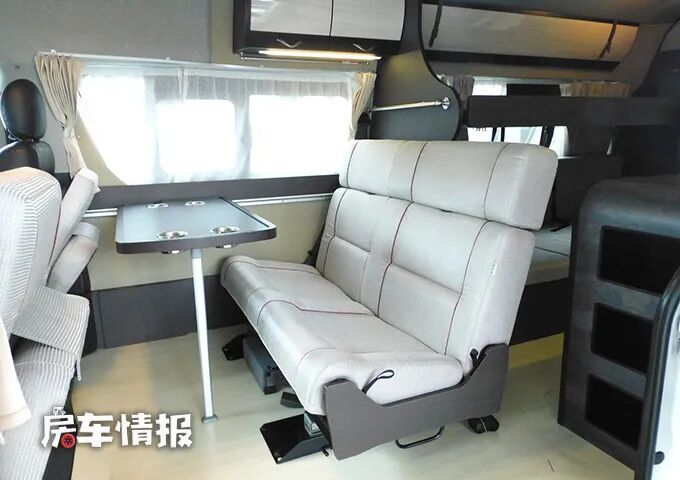 进入到车厢内部,就感觉到和其他主流的海狮床车完全不同,这款车更像是在一辆B型房车中加入了C型房车的布局。