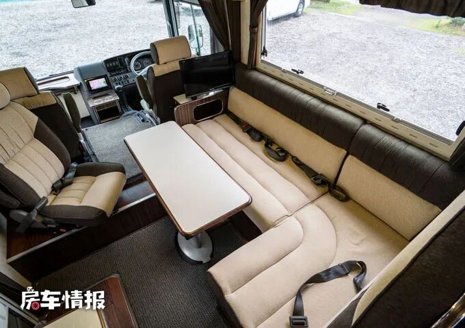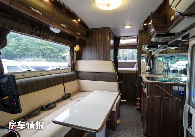 车内的整体布局还是和主流的日本房车保持相当,不过在家具的配色和选材上则显得更为高档和豪华。
