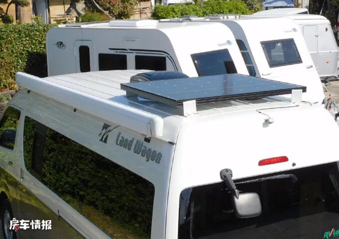 这款房车的车顶还配有200W的太阳能板,车顶的太阳能板还有空调的室外机也是辨别房车的一种方式,大家下次在路上遇见的时候也可以判断一下哦。