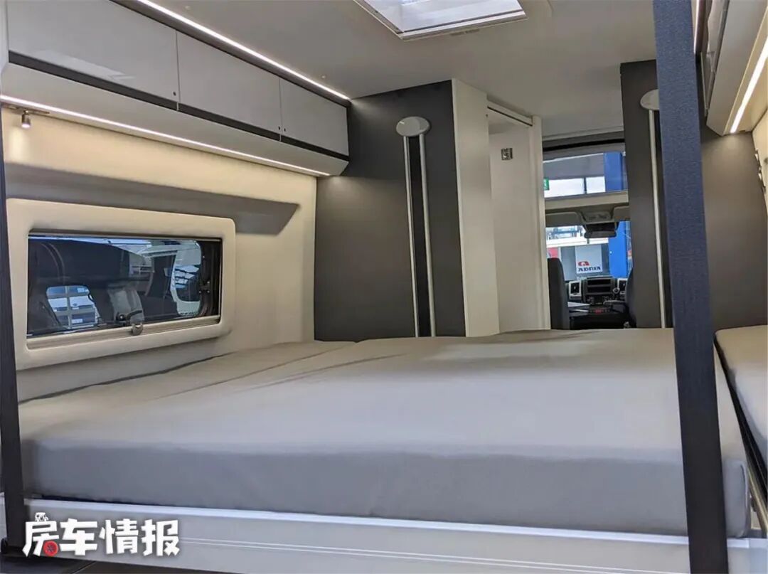 这款是由阿迪雅房车基于菲亚特底盘打造的B型房车TWIN SEPREME 640,天幕的设计让车辆更有特点,喜欢户外景色的朋友也一定会喜欢上这辆车的,另外这个驾驶室顶部天幕的设计也被国内一些厂家借鉴。