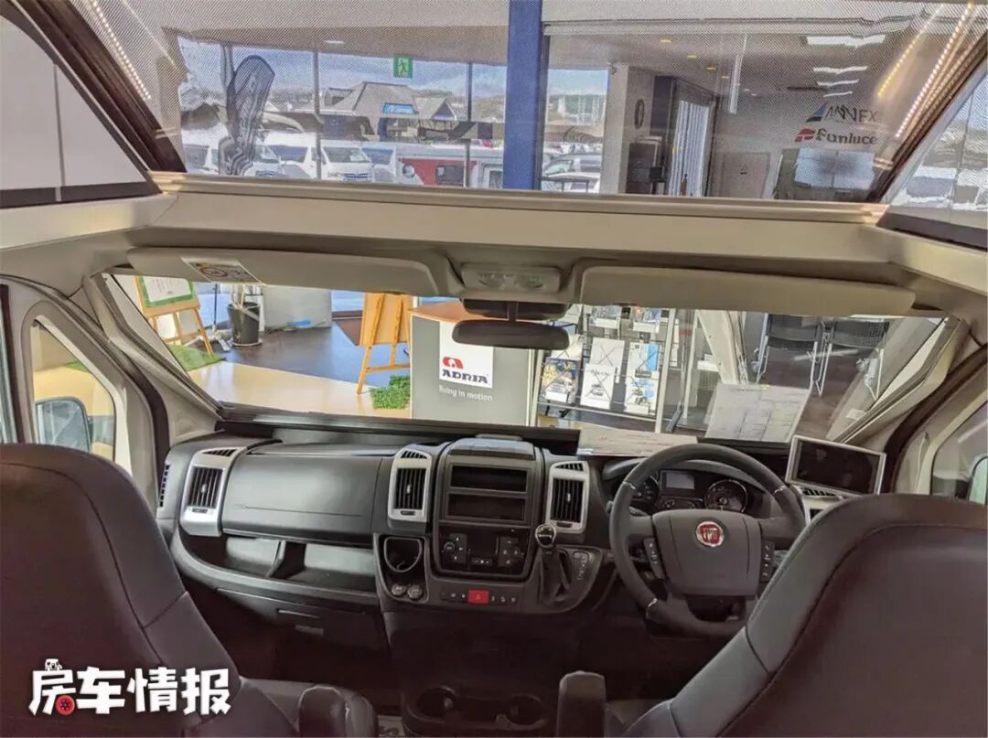 在驾驶房车出行的过程中,车内的生活也是极其重要的一环,如果能够在冬暖夏凉的车内随时的欣赏户外景色,那也是一件令人出行愉悦的事情,所以有的车型便在驾驶室上方装有一个小的天窗,这样,夜晚就可以在驾驶室或者会客区欣赏星空,但是这一个小窗怎么能够满足车友们的兴趣呢?今天,我就发现了一辆装有天幕的房车,有了这么大的视野,就可以更方便欣赏美景了~
