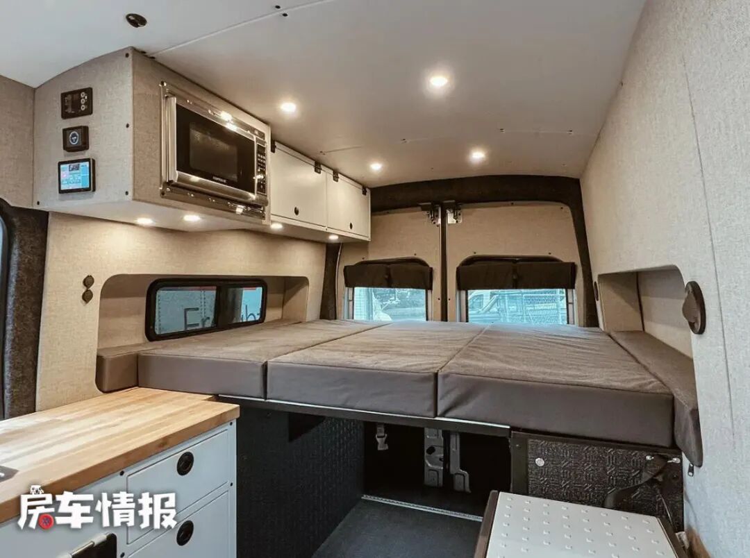总的来说,这款福特Grit房车,在空间的设计上可谓是别出心裁,既解决了较小空间内的生活设施问题,也满足了空间问题,对于这样的设计您是否满意呢?这款车没有升顶设计、电池容量较小、不安装空调和其他功能的基础款售价约为99.7万元人民币,而顶配款售价约为114.9万元人民币,同时还在开发基于奔驰底盘的房车。想要了解更多有意思的房车,欢迎大家持续关注房车情报~