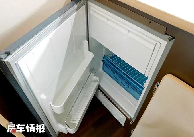 橱柜下还有一台64L的冰箱,方便大家存放出行时的食物。
