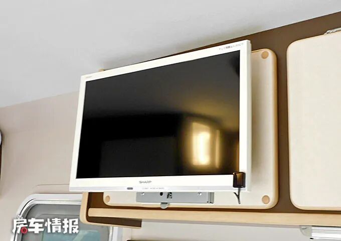 会客区上方装有一台可移动的19英寸电视,方便大家在车内观看,开展更多的娱乐活动。