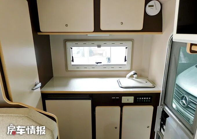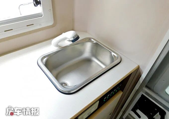 厨房在车尾进门处,装有洗菜池、水龙头,车内带有卡炉,可以自行选择在车内或车
