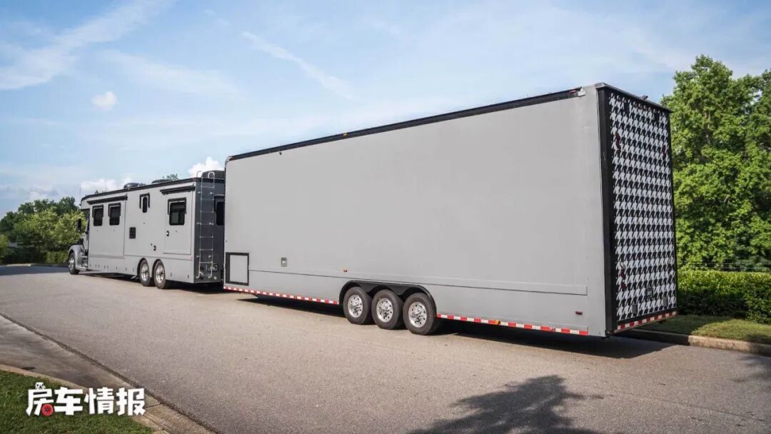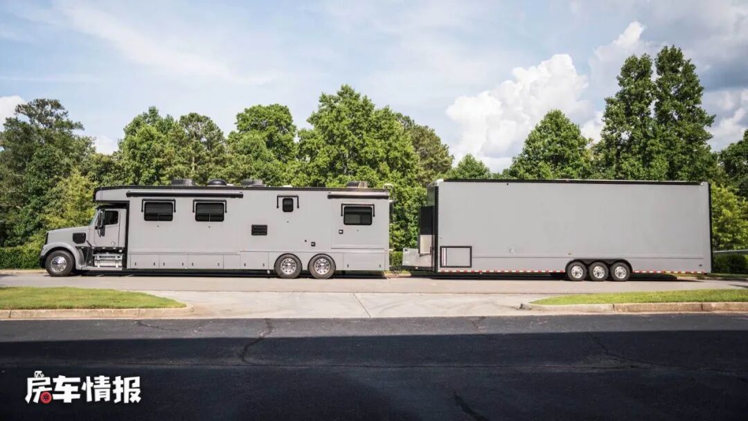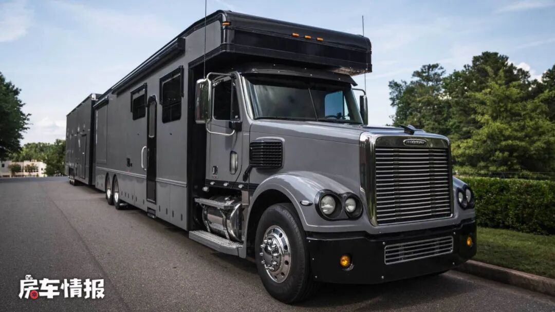 我们之前为大家介绍过重汽、斯堪尼亚、乌尼莫克等超大型的房车,但是在今天这款房车面前确切的说是组合面前,他们还是小了一点,这款车就是 Freightliner 福莱纳Coronado 重卡房车 + Haulmark Garage Trailer拖挂车,是由前车加后面的拖挂组成的,让我们一起来看看它究竟有多大吧。