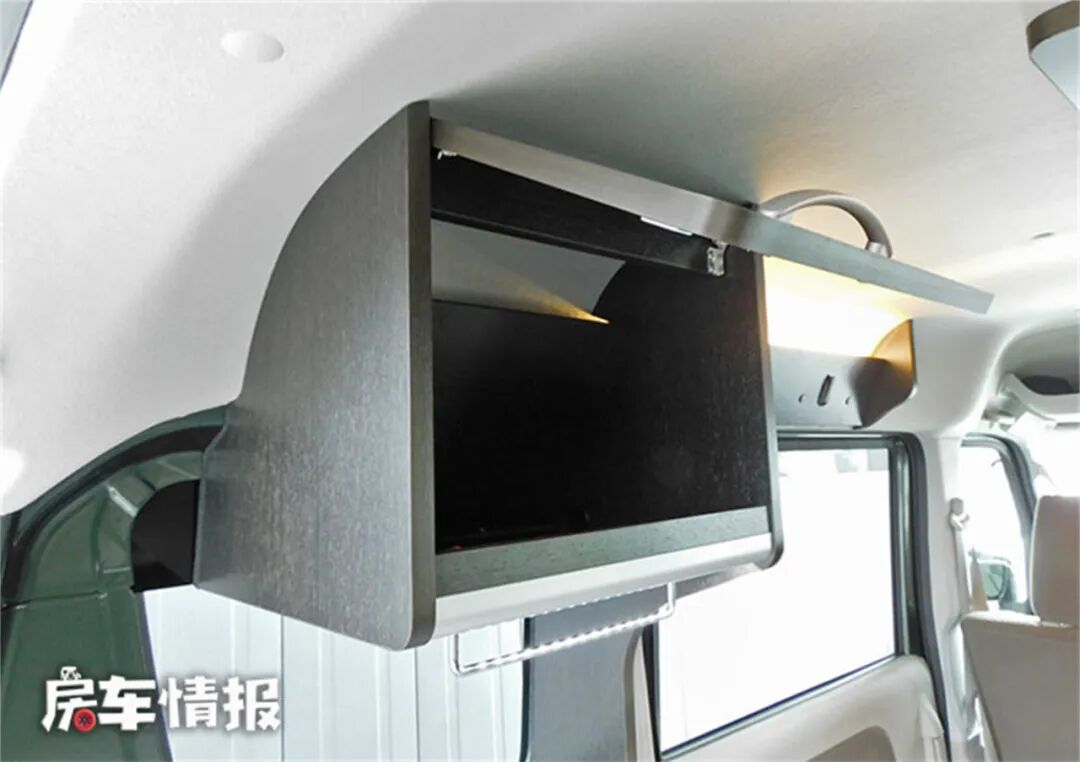 进入车内生活区,可以看到本车空间的拥挤了,后排座椅两侧到了车门处,腿部空间也很小,后面的床垫也几乎占满了剩余的空间,这辆车目之所及的区域都有一定的作用。