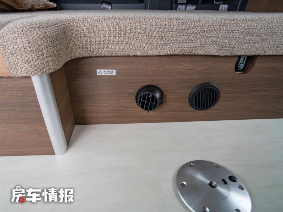 在右侧沙发下面,还装有加热器和出风口,这样就可以保证生活区内舒适的温度了。