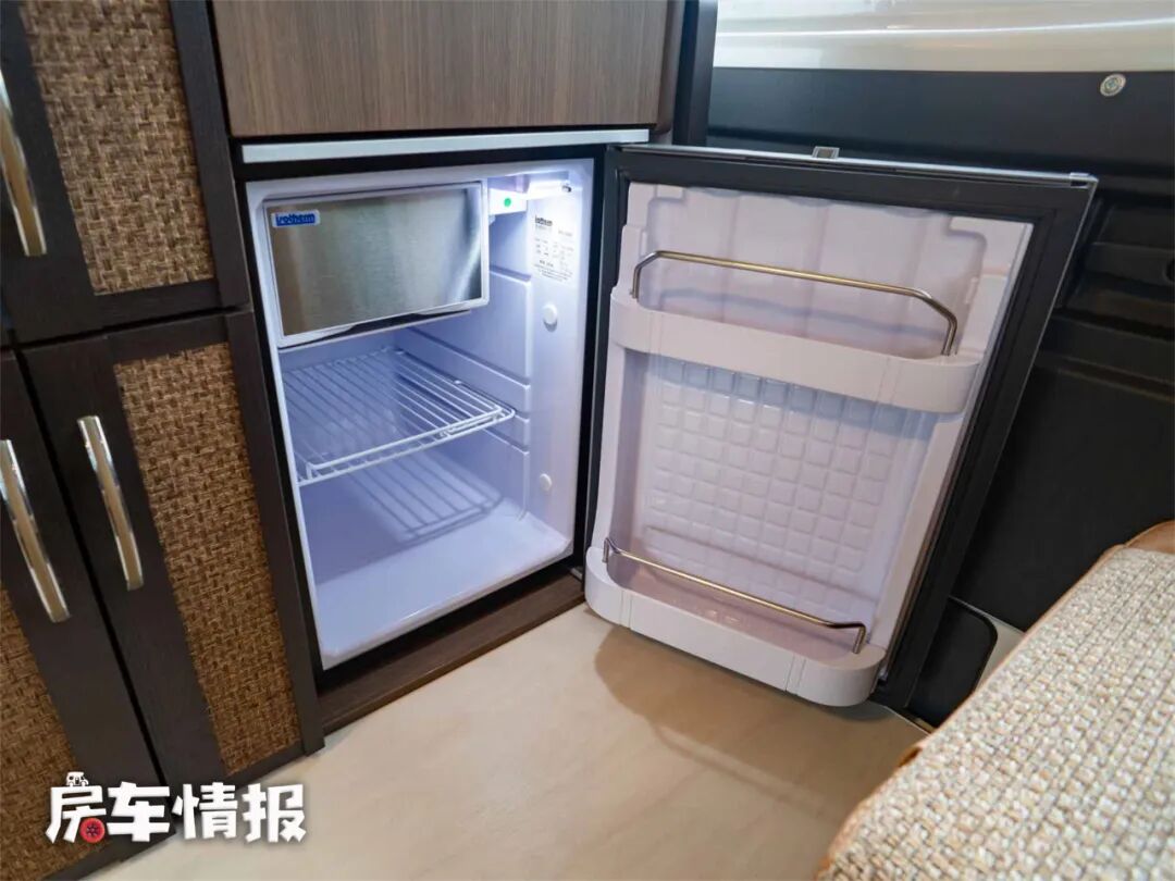 橱柜里还有一台49L的冰箱,可以放置食材,可以满足两人2、3天的用量。