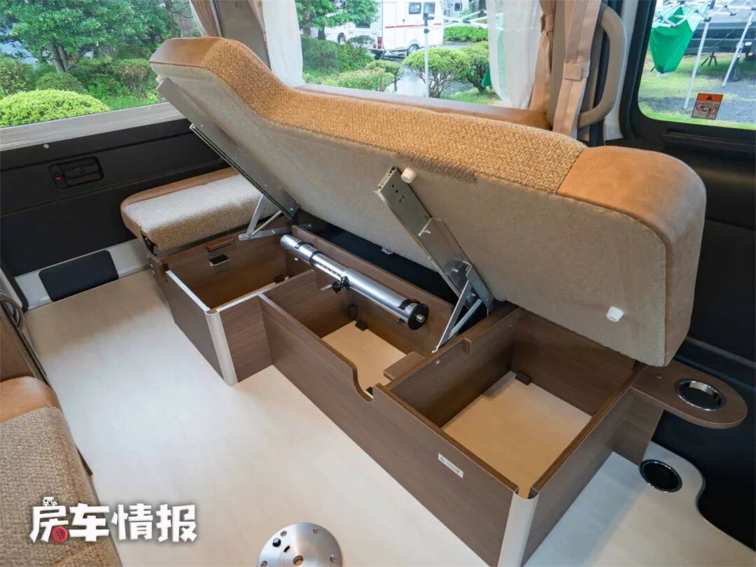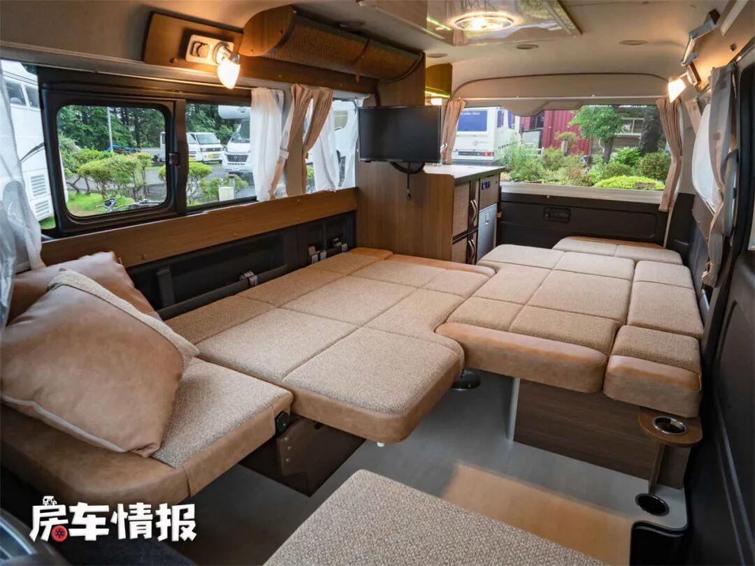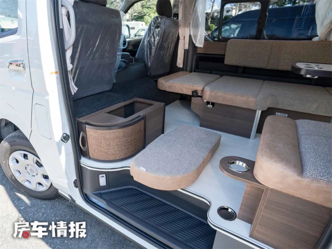 这款丰田房车基于海狮GL底盘打造,在空间上有很大的优势,可以在车内摆放更多的生活用品,这款房车也正是发挥了这一特点,将会客区进行了扩大,有了一个更大的聚会、休憩空间。
