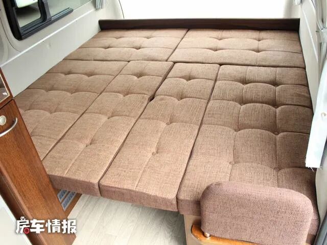 在车尾部打开尾门以后,车外与车内外完全相通,天气好的时候可以躺在这里看风景,在沙发底部的空间则是一个空间挺大的储物箱,可以存放一些日常行李。