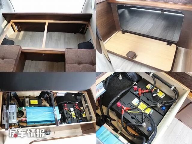 水电方面,向来不是日系房车的长处,这款车仅提供了1500W逆变器、100Ah锂电池以及70L净水箱和70L灰水箱,基本上能够满足1-2天的使用需求。
