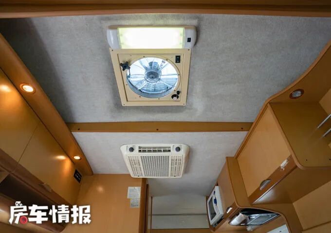 车顶中间装有换气扇和空调,可以及时的交换车内外的空气,还可以让大家享受到适宜的温度。