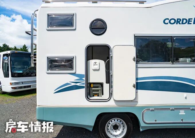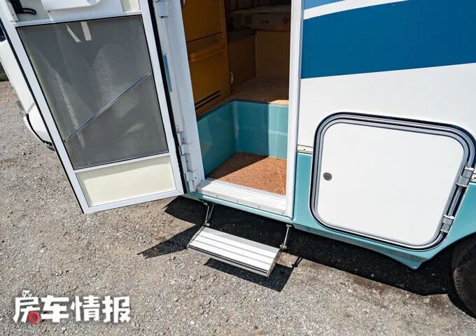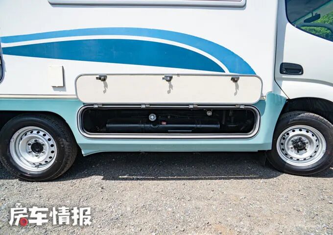 车身以白色为主,装饰有深浅两种蓝色的拉花,让这辆房车在炎热的夏天也能带给大家凉爽的感觉。外侧装有菲亚玛3.5米遮阳棚、水电接口、电视天线、燃气管储藏舱、车尾爬梯等设备,还设有设备检修口,车尾左侧的储物舱还可以直接连接到车内,这样的设计也方便了大家在车内直接拿取物品,哪怕是下雨天也不用去车外拿取了。