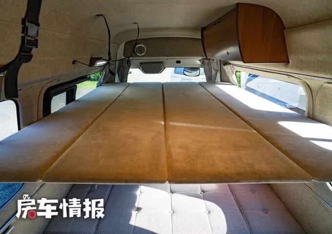 和其他我们常见的床车不同,这款车在车身左侧上方加入了一个手动的遮阳棚,这样也为整辆车带来了更高的辨识度,从下方的乘客门则可以进入车厢内部。