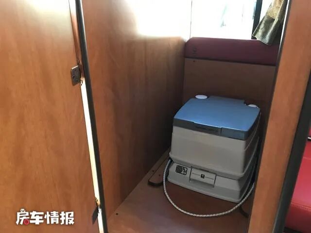 车内卫生间位于车厢中部的一侧,内部空间并不是很大,提供了一个便携式马桶,临时应急啥的还是没有问题的。
