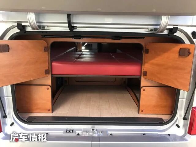 车身外部的整体设计更加简单,就连房车上最常见的遮阳棚也没有提供,但从外观看真的很难把它和普通车型区分出来,但打开车厢尾部行李箱,可以看到是一个和车内相通的设计,拿取物品比较方便。