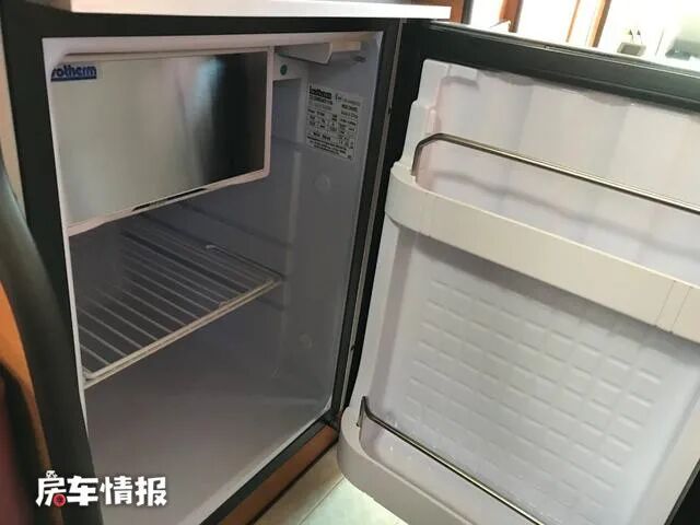 厨卫区域位于车厢中部,车内的厨房提供了一台美固房车专用冰箱、洗菜池、微波炉等设备,想要做饭的话可以自备一套便携式卡炉。