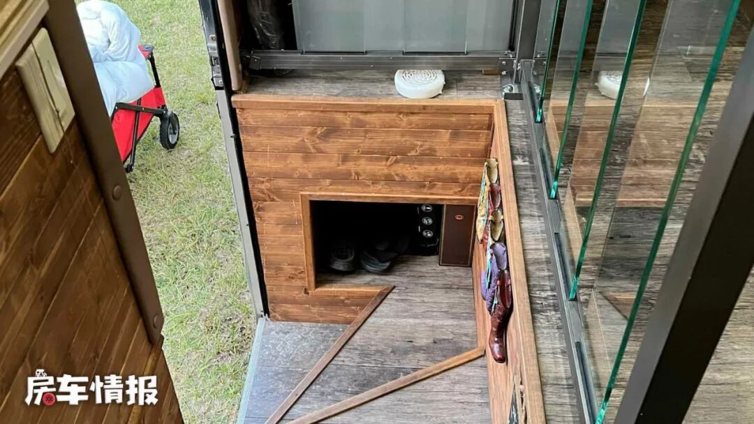 整辆车的上车区域也特别的有意思,因为车身整体较高,所以上车的踏步是设计成了螺旋样式的,上方还带有保护栏,这样也能够提升整辆车内部使用的安全性。