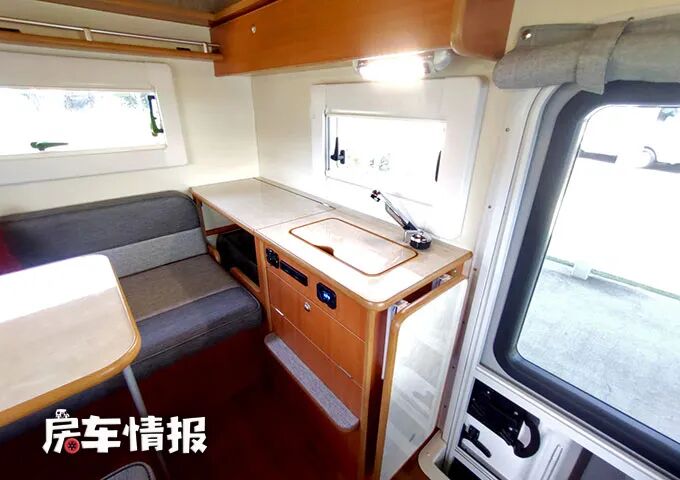 电路上,这款车是搭载了基础的行车充电系统,配置了一块105Ah的副电池,水路上则携带了13L的净水箱和13L的灰水箱,不过后期也可以根据自身需求增加整体的容量。