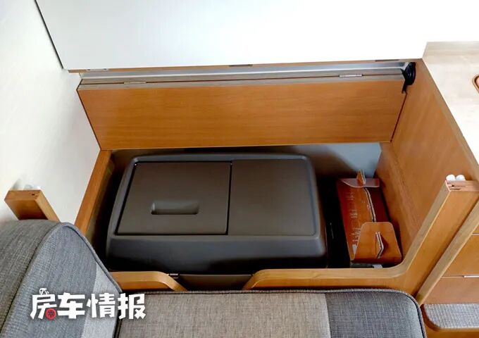 乘客门前侧是一个小型的置物柜,上方能够放置一台电视机,下方则可以用来存放日常换穿的鞋子。