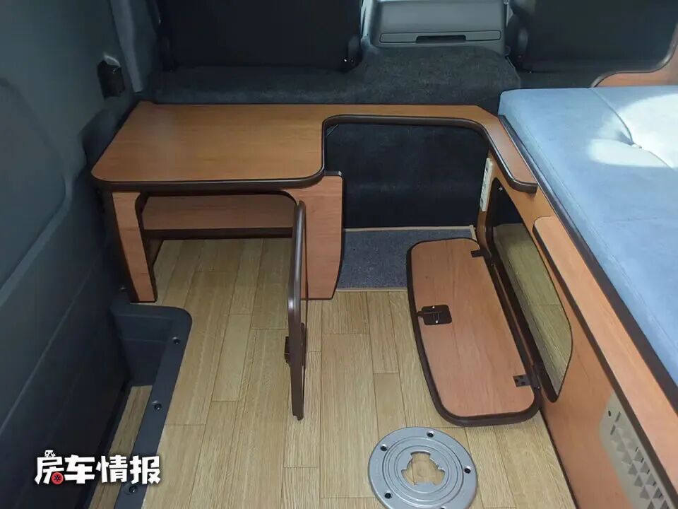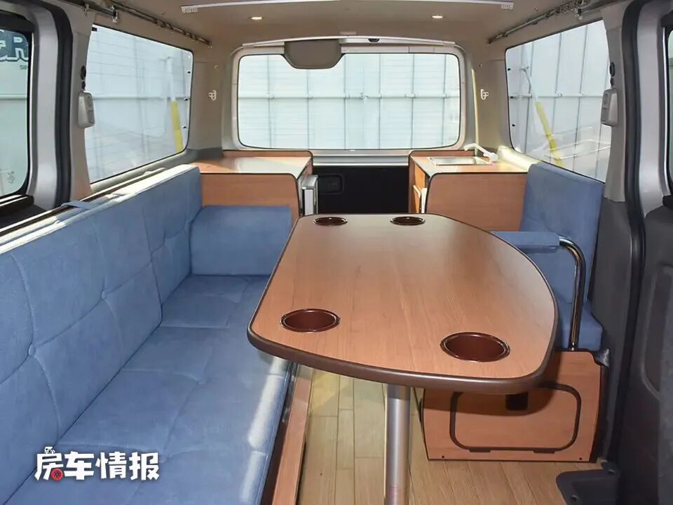 中间则是一张可拆卸移动的餐桌,平时驻车时则能够满足在这里就餐、工作和小憩的需求。