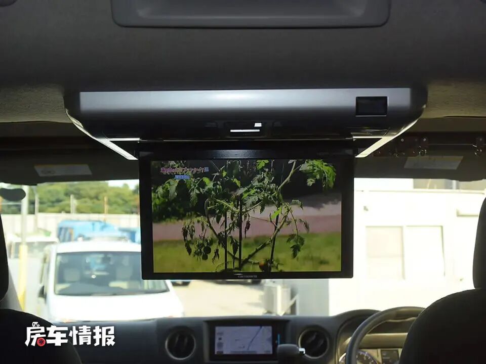 而在驾驶室顶部还配置了一台吸顶的微型电视机,也能够看一些简单的电视节目,放松一下。