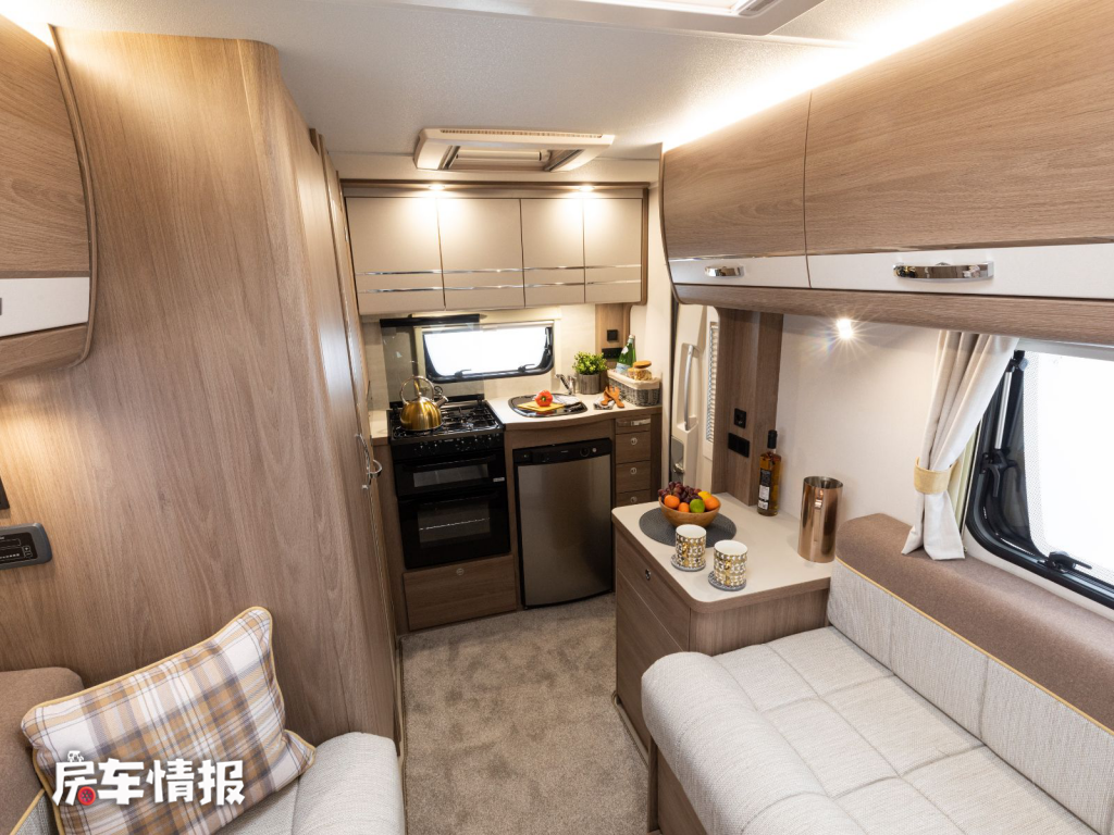 进入车厢内部,受限于车身尺寸,内部空间并不是很大,甚至还会有些局促,但车内的布局方式却十分新颖,和以往见到的任何一款进口房车或者国产房车都不一样。