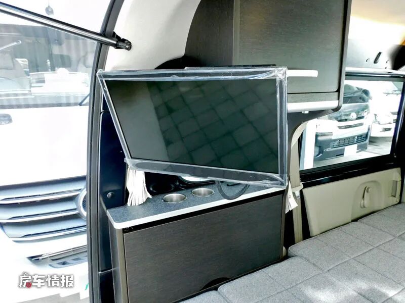 车厢尾部则是全车的主要功能区,一左一右带有两个柜子,两侧的柜子侧面都带有可翻折的桌板,能够为日常的就餐提供便利性。