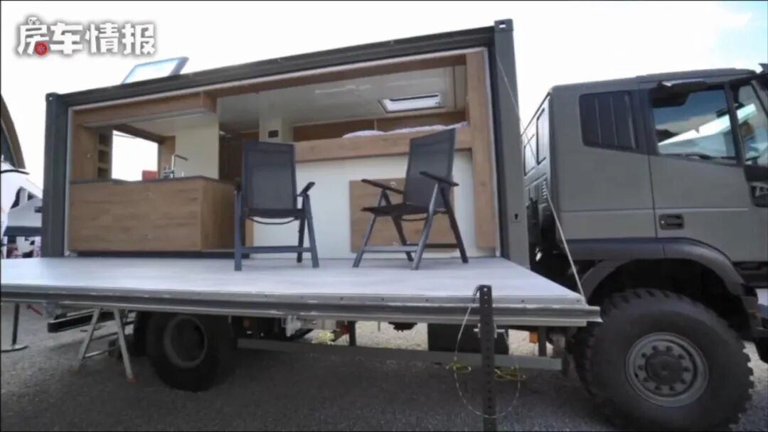 轻卡房车介绍过不少,但是带超大露台的轻卡房车你肯定没见过!今天给大家找来的这款房车就是一款采用方舱设计的平头轻卡房车,外观上看起来和常规厢货还有些相似,不过最厉害的是这款车右侧箱体可以完全打开,变成一个超大露台,这时候整个生活区全部展现出来,形成了一个半开放的状态,那你全方位融入到环境中!更多详情来看视频吧~