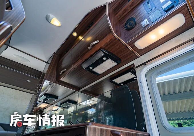 水电路方面,这款车是搭载了1500瓦的逆变器,提供3块共300安时的副电池,同时在顶部还配置了两块共180瓦的太阳能电池板;水路上则拥有100升的净水箱和90升的灰水箱,并且车内还提供了伟巴斯特的加热器,可以保证正常的使用车辆。
