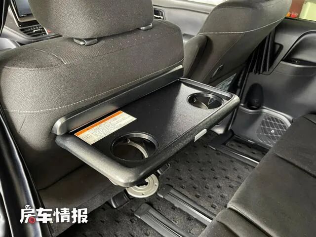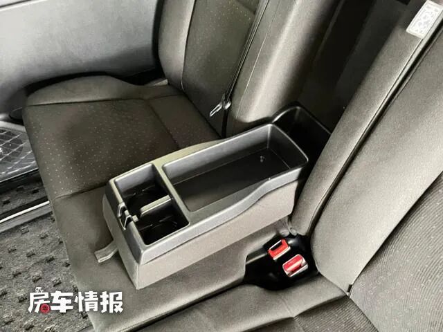 车厢内部还是保留了第二排的乘客座椅,配有三条安全带,日常行车可以乘坐,中间的座椅没有需要的时候还可以变成中央扶手用来放置物品,另外在前方座椅的靠背后方,还提供了滑轨,可以安装上杯托架,方便日常的使用。